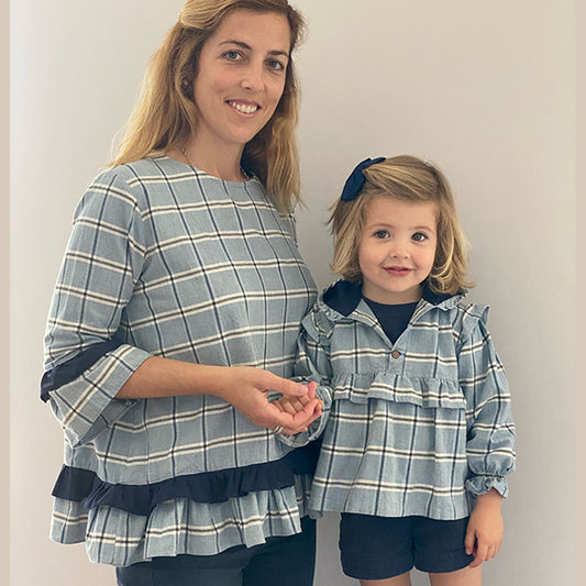 Xadrez Azul Túnica Menina