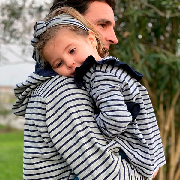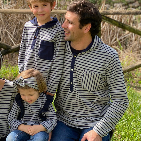 Túnica em jersey com bolso e capuz, manga comprida , fecho à frente com botões.